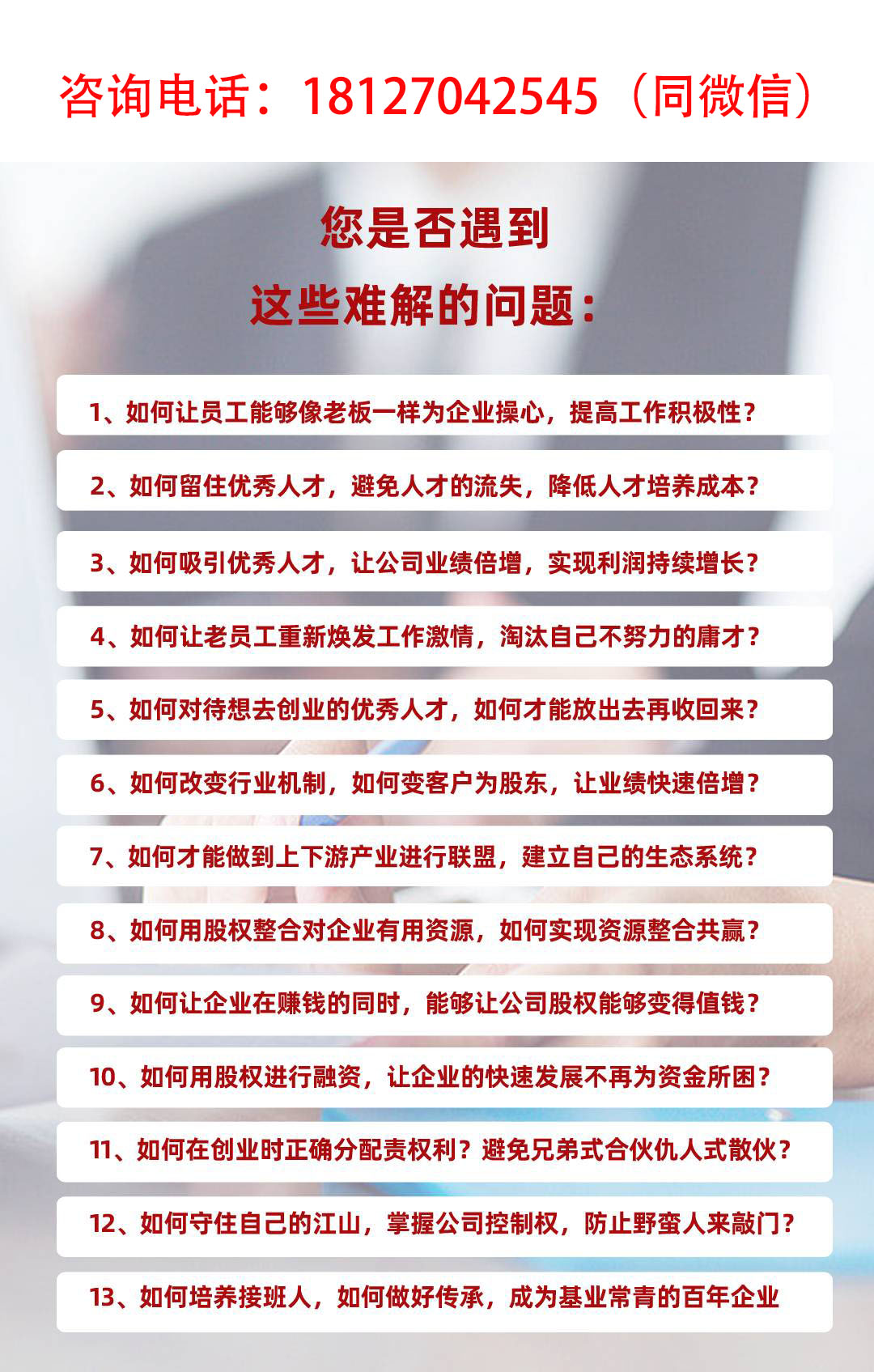 因为大好咨询是:1、一家不卖任何课程,只专注于走进企业量身定制股权方案及薪酬绩效设计的落地咨询辅导机构。2、一家在入企落地方案设计辅导结束后,客户满意度达到100%的落地咨询辅导专业机构。3、一家敢于对方案设计结果负责的落地辅导机构,首创咨询公司成为被激励对象,为企业创造价值才有收益。