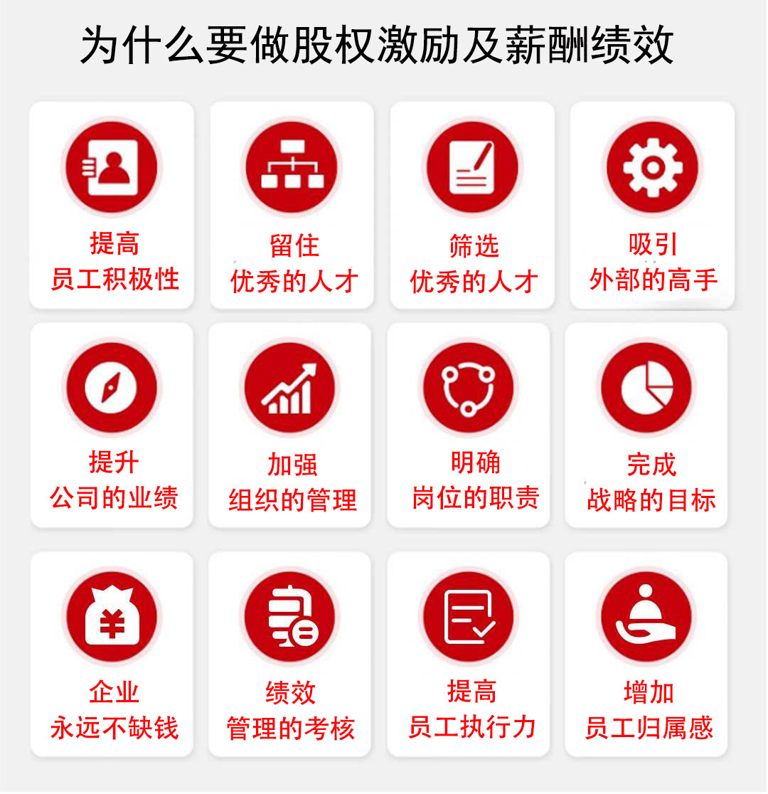 企业实施股权激励及薪酬绩效的好处: (1)通过股权激励及薪酬绩效进行融智,包括吸引核心人才、留住核心人才、激励核心人才、新老核心人才的更替。 (2)促进企业的业绩倍增。(3)通过股权进行融资,从目前来看,如果需要进行资本运作,让投资机构看上进行投资,公司必须要有完善的治理结构,投资机构投资公司不是单纯投资创始人一个人,而是投资一个团队,因此很多投资机构进行投资时一般有要求公司设置股权激励。
